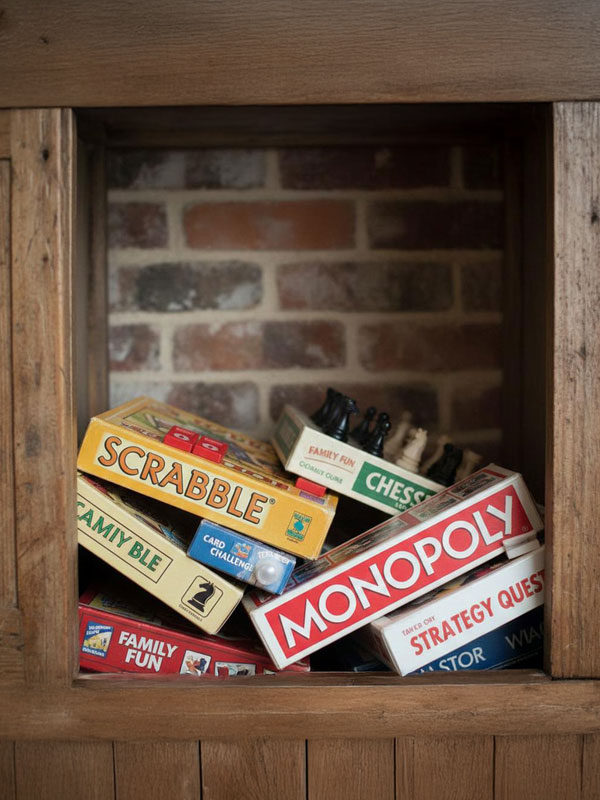 We’ve filled a cupboard with games like chess, Scrabble, and more, so you can enjoy playful moments, friendly challenges, and laughter whenever you like.